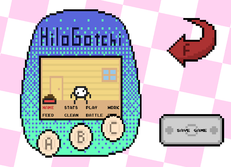It's really charming so far, I have a soft spot for these old things. The pixelart looks nice for what it is, and the backgrounds + the colors of everything reminds me of the PS1 era. The fact that I can flip it around to find the reset button is a nice touch (plus the Easter Egg is cool too)! The only complaint I could possibly come up with is that the confirm button in the shop should take you back to the main screen instead of putting you back in the shop. Other than that, it looks really clean so far, plus the little dances and such fit my exact sense of humor perfectly. Good luck on the rest of this thing!